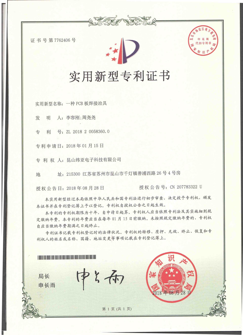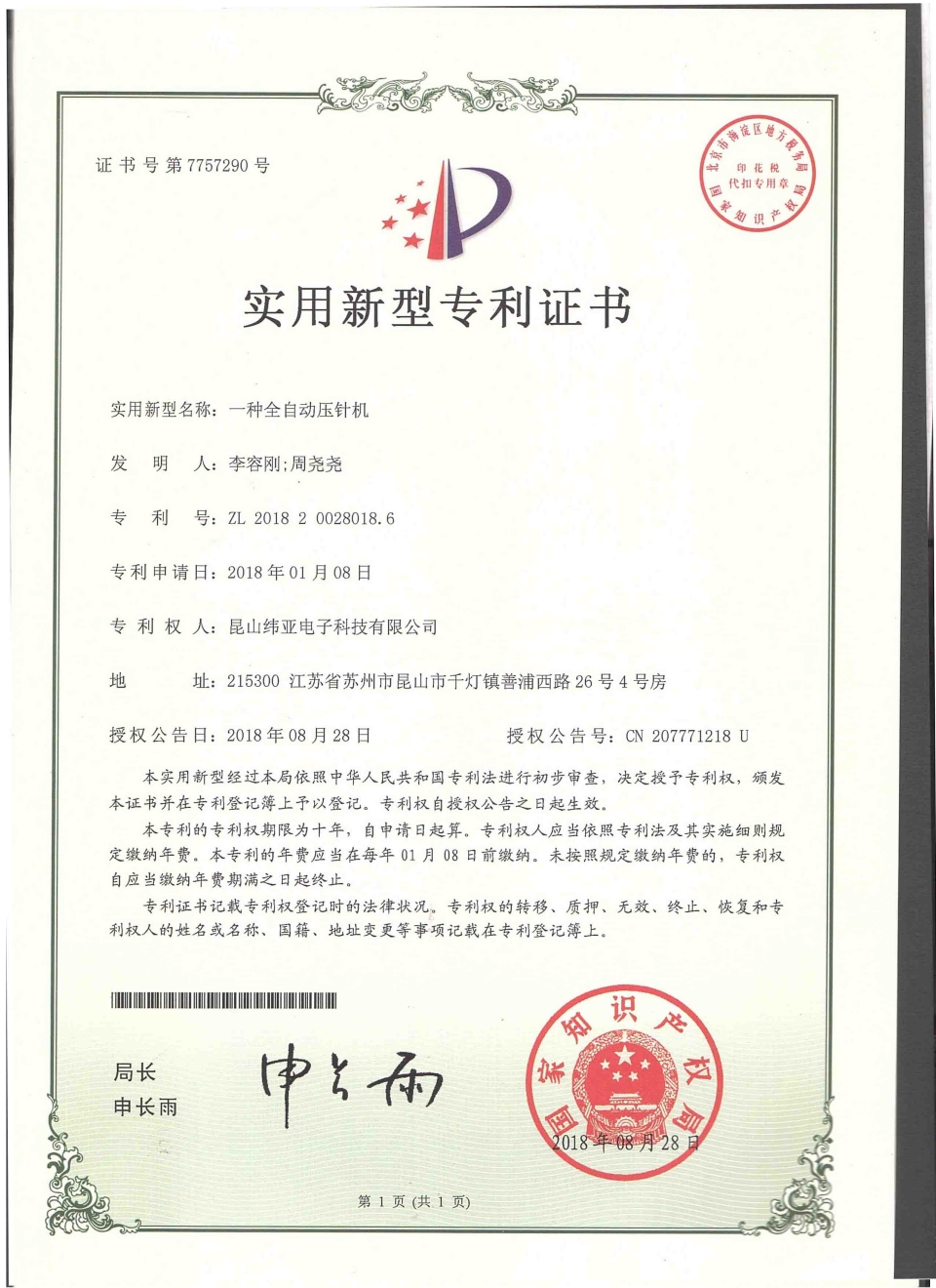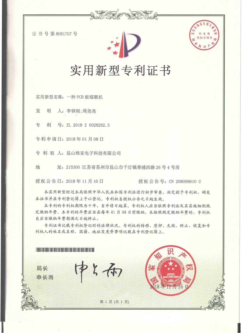 首頁(yè)  關(guān)于緯亞專(zhuān)利證書(shū)