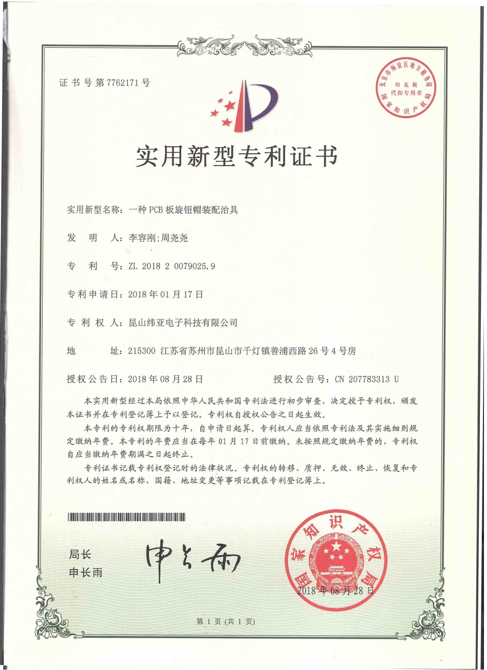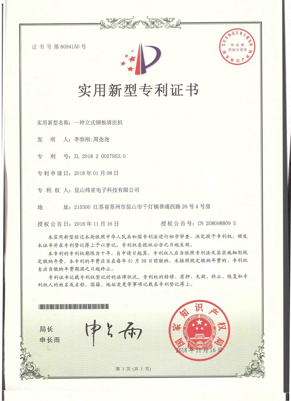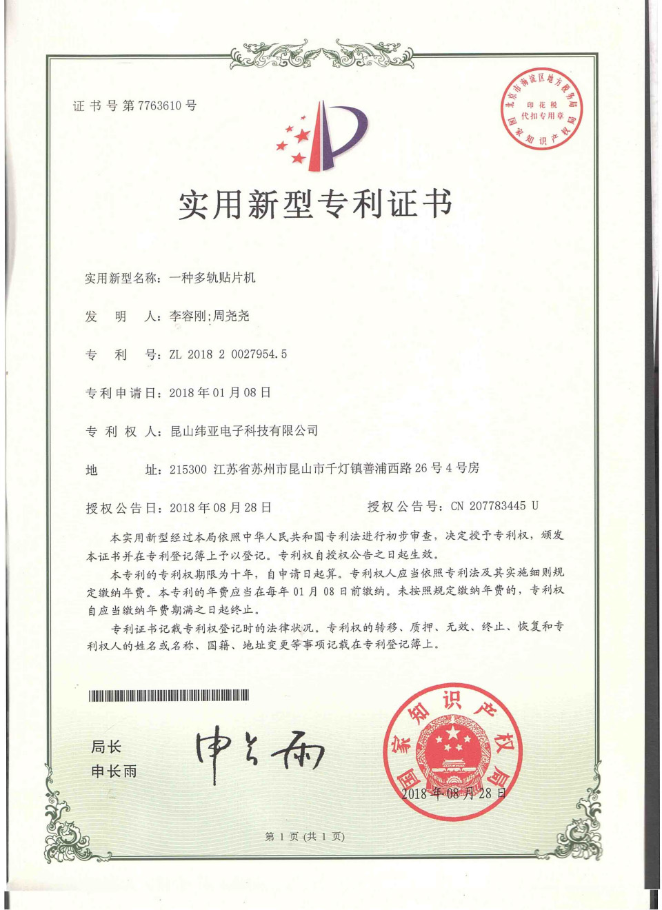 首頁(yè)  關(guān)于緯亞專(zhuān)利證書(shū)