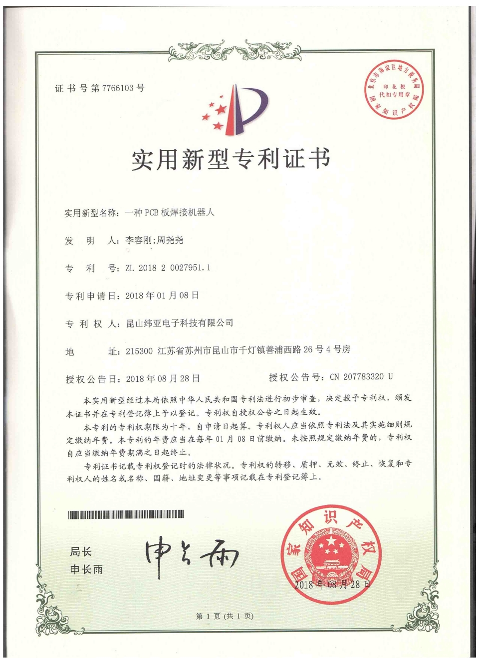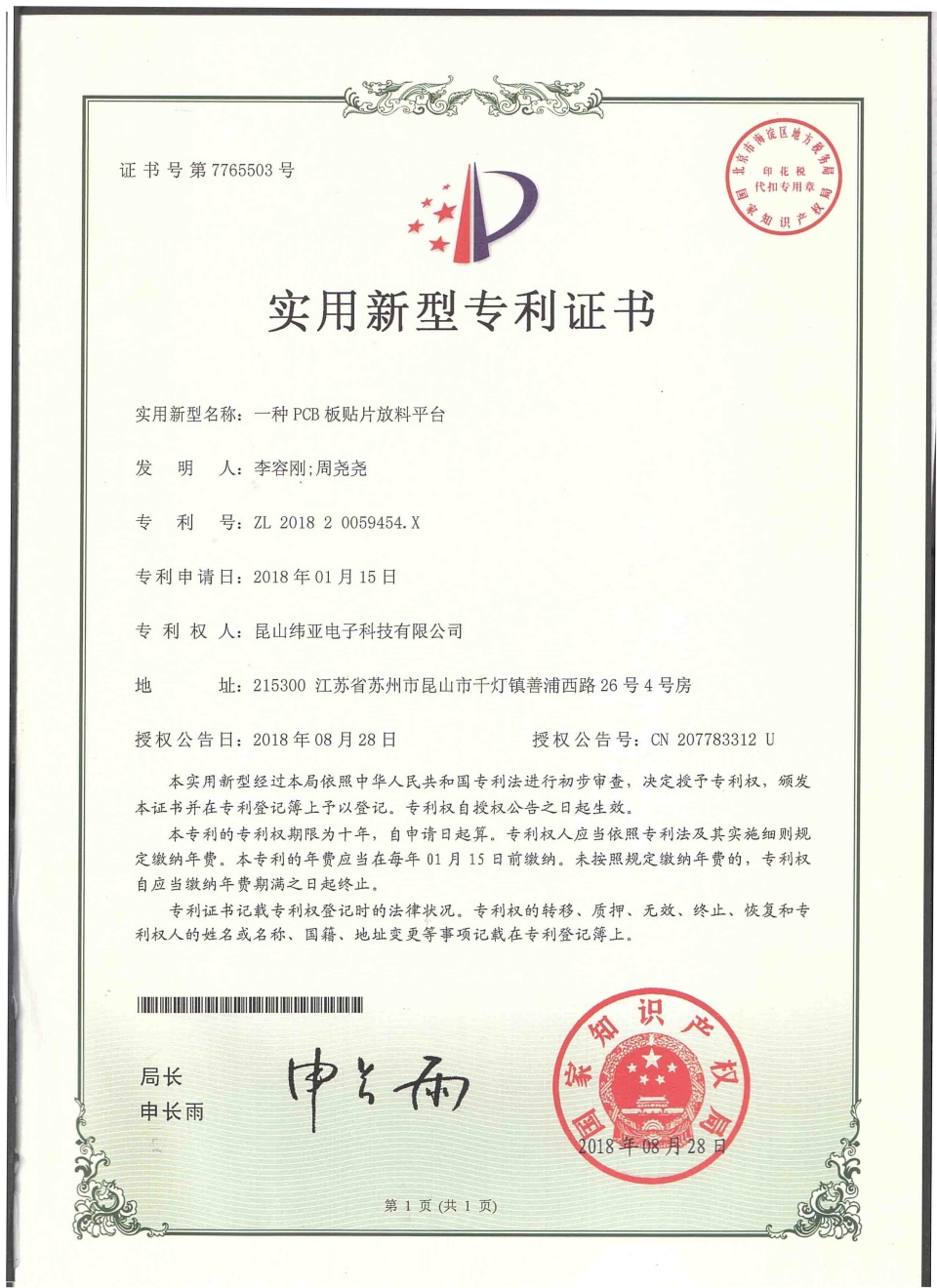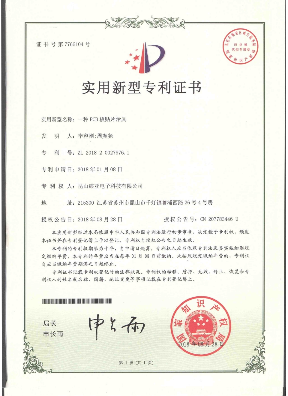 首頁(yè)  關(guān)于緯亞專(zhuān)利證書(shū)