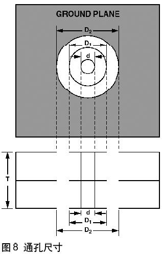 通孔是另外一種寄生源;它們能引起寄生電感和寄生電容。公式(3)是計算寄生電感的公式(參見(jiàn)圖8)。